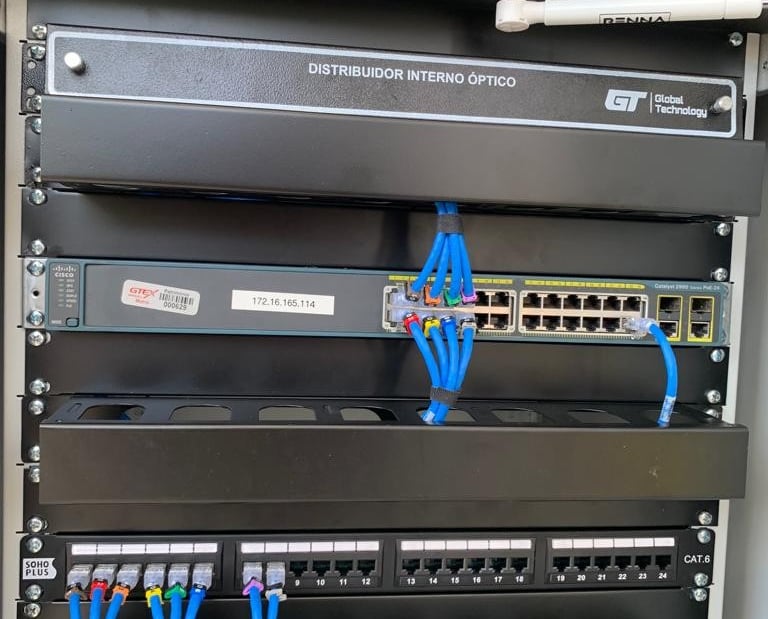 Projetos e execução de cabeamento estruturado para redes de dados, voz e imagem, garantindo organização, desempenho, estabilidade e alta performance para empresas e ambientes corporativos.